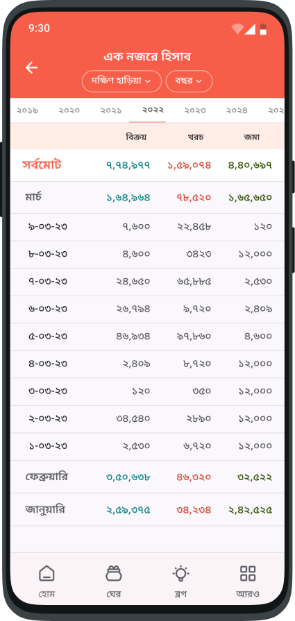 খাতা কলমে হিসাব রাখার দিন শেষ। এখন হিসাব থাকবে ডিজিটাল ভাবে এবং ডাটা থাকবে সুরক্ষিত। এক ড্যাশবোর্ডে পেয়ে যাবেন সব অপশন।